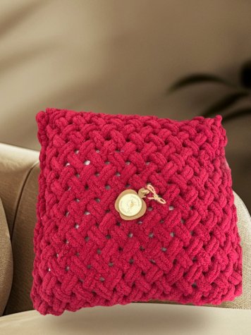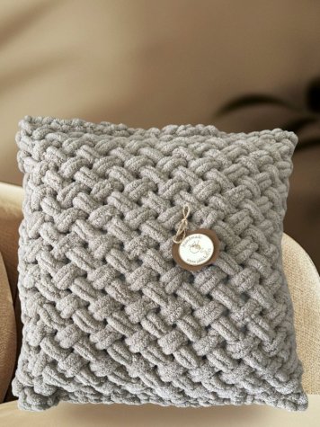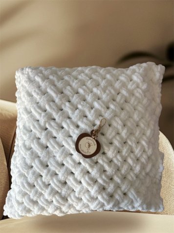 Polštářky jsou pleteny tak, aby se mohl povlak i polštářek vyprat v pračce — tvořené srdcem v galanterii jablíčko17 v Koryčanech, ne sériově.
